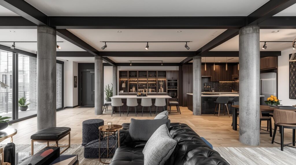 Na decoração de interiores, as vigas e colunas podem ser vistas como elementos arquitetônicos que dão estrutura, mas também como protagonistas visuais se você souber escolher os acabamentos e as cores certas. Uma viga que fica aparente de concreto, por exemplo, pode trazer aquela pegada mais industrial que já combina perfeitamente com ambientes modernos, enquanto uma coluna revestida com madeira pode aquecer um espaço e deixar a sala mais aconchegante. A ideia é não deixar que esses elementos pareçam fora do lugar, e sim integrá-los de forma natural à proposta decorativa.