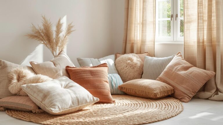 Uma das mudanças mais poderosas é a troca das capas de almofada. Parece pequeno, mas não é. Sofá neutro com almofadas apagadas deixa a sala sem vida; quando você coloca capas novas com textura, estampa, cor sólida moderna ou até aquele mix de listras e geométricos, o ambiente ganha personalidade na hora. Nem precisa comprar almofada nova, só as capas já fazem milagre e você ainda consegue trocar conforme estação, humor ou datas especiais.
