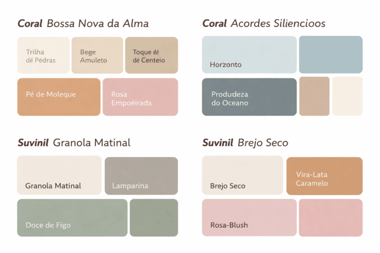 Montar uma paleta de cores para ambientes pequenos pode ser divertido e transformador quando você entende as nuances de como cada tom influencia espaço, luz e sensação, e usar paletas reais de marcas como Coral e Suvinil te dá uma base confiável de cores que já foram estudadas e combinadas por especialistas e isso faz toda a diferença no resultado final.