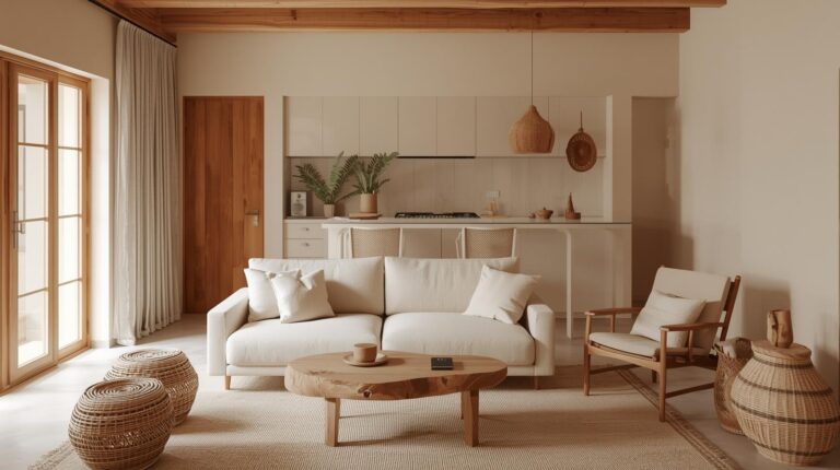 Paleta de Cores Moderna Aconchegante (neutros quentes + madeira média)